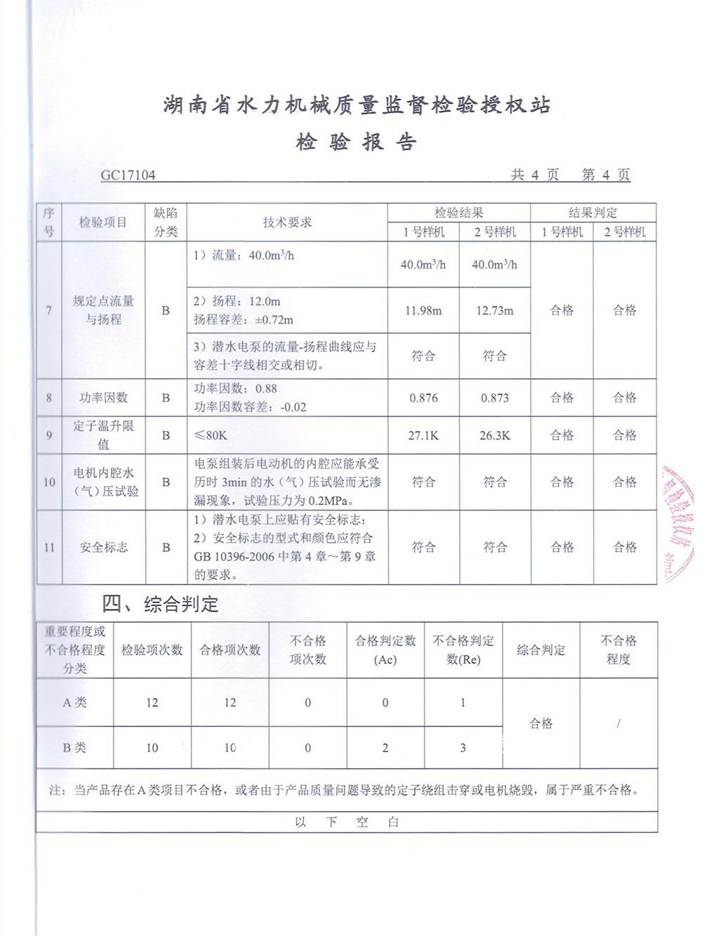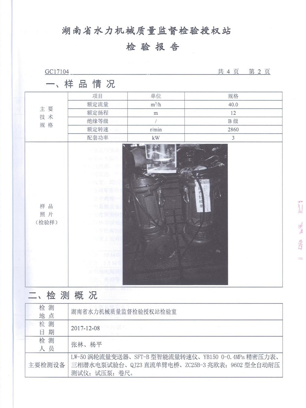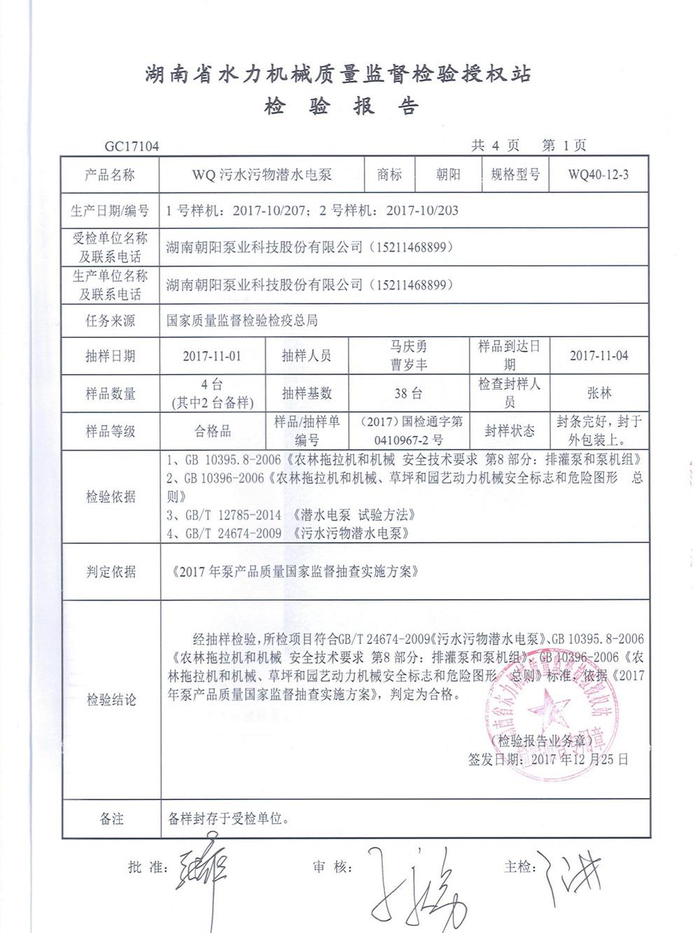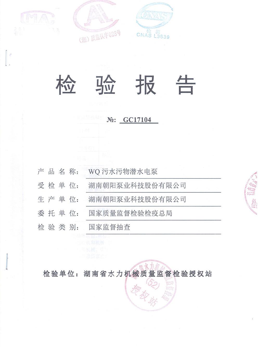 WQ污水污物潛水電泵檢測(cè)報(bào)告